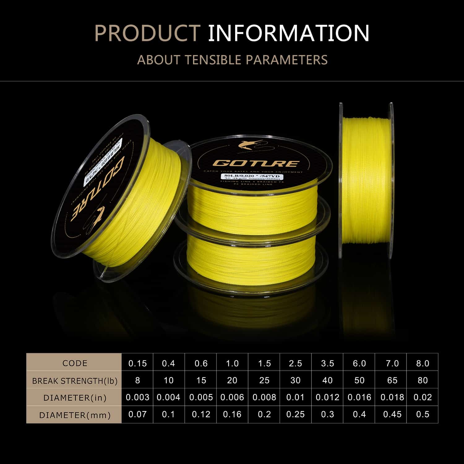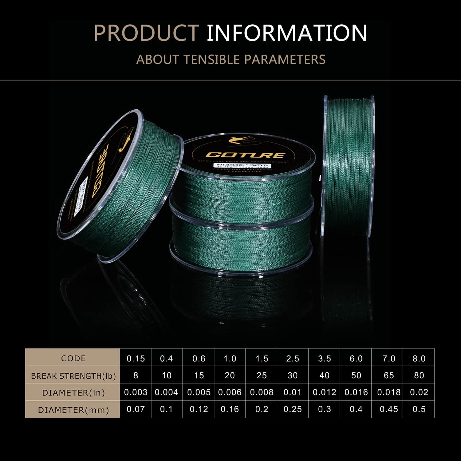 | Break Strength | 10lb, 15lb, 20lb, 25lb, 30lb, 40lb, 50lb, 65lb, 80lb, 8lb |
